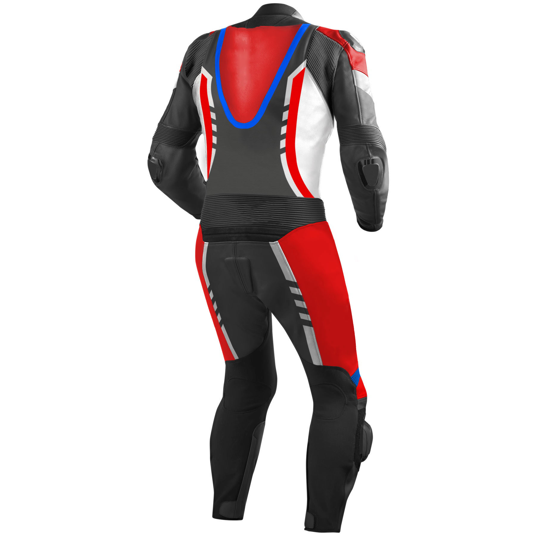 • Racing Leather Suit: Full-grain cowhide leather motorbike suit with external knee sliders, triple stitching, and removable protectors. Designed for professional riders seeking maximum protection on road and track.